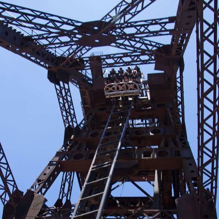 Esta montaña rusa sudafricana estableció un récord de nicho: la mayor cantidad de fuerzas G de cualquier montaña rusa en el mundo. Con 6,3 Gs, la Torre del Terror es tan poderosa que podría hacer que algunas personas se desmayen. La fuerza gravitatoria es el doble de la que experimentaría un astronauta en el lanzamiento de un cohete normal. El momento más memorable de este viaje es una caída de 49 pies en un antiguo pozo de mina funcional.