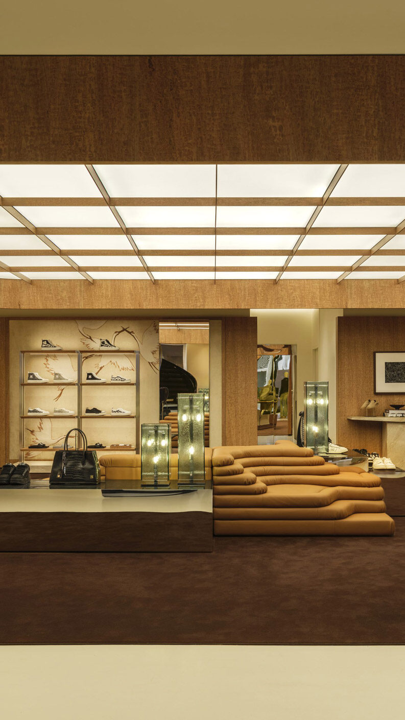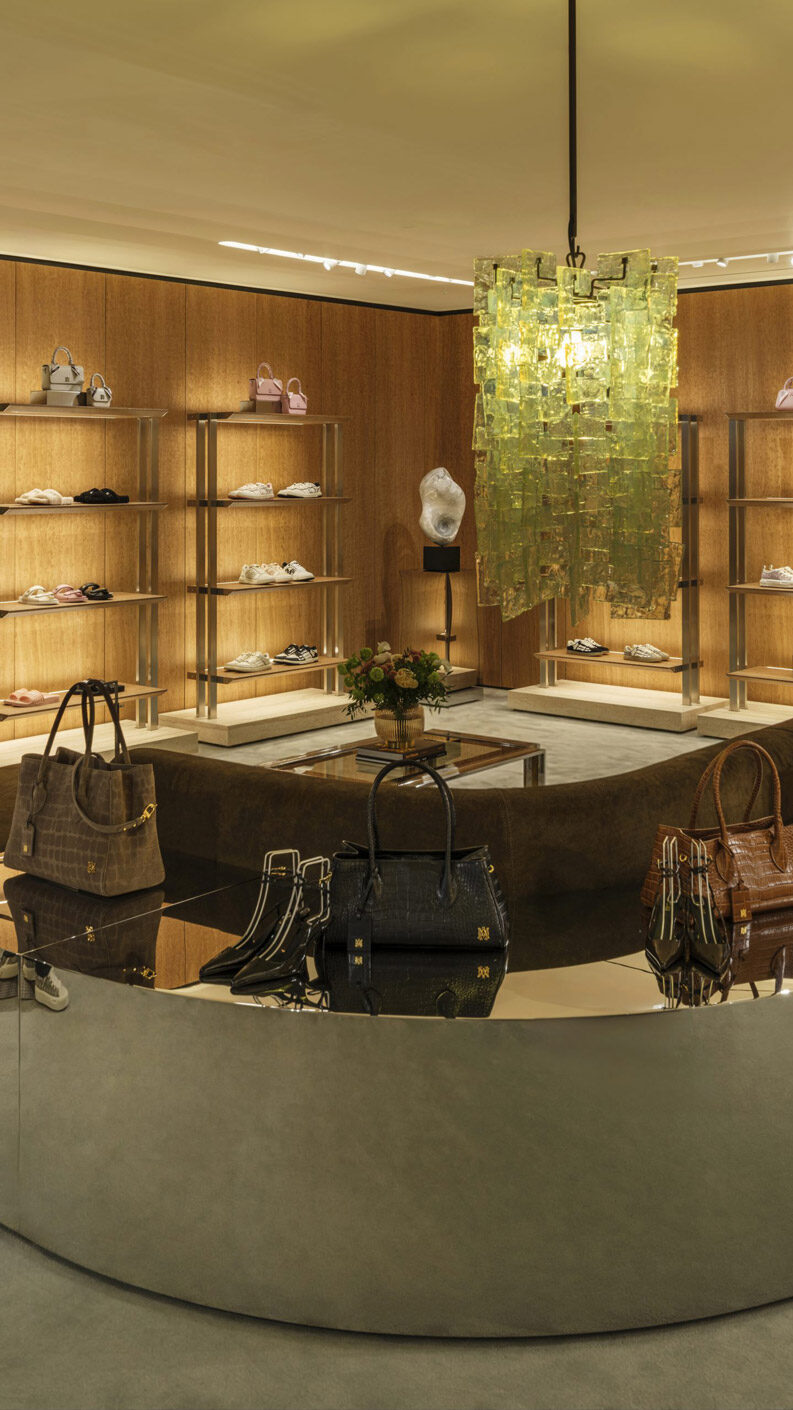 Nada de escaparates fríos ni iluminación clínica. Acá la ropa convive con el espacio de una manera que recuerda más a la sala de un coleccionista que a un local de lujo convencional.