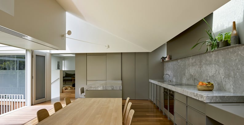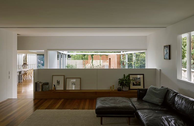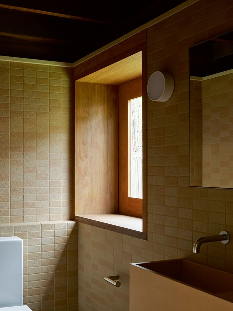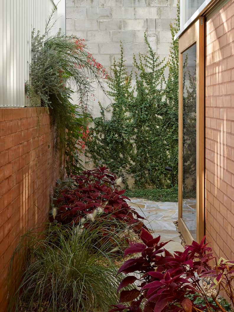 La extensión se apoya en este terreno de media altura, cerniéndose sobre la vía de circulación occidental y la red de alcantarillado. Casa de la calle Beck no se esfuerza por ocultar el carácter de la propiedad existente, sino que lo conserva y lo celebra. Derivando una paleta que complementa el armazón de madera dura en bruto y los restos de ladrillo del lugar.