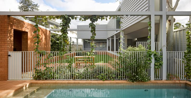 Para solucionarlo, se debía crear un nuevo terreno elevado para la piscina y el césped detrás de estos muros existentes. Lo que permitió la ampliación de la cocina y el comedor en la planta superior, teniendo una gran conexión con el jardín y cualquier reunion al aire libre.