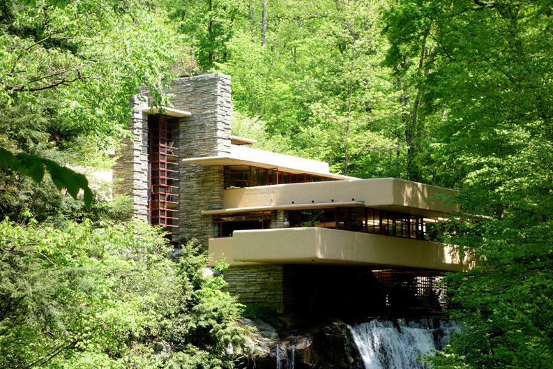 En lugar de construir frente a la cascada para que la familia la contemplara desde lejos, Wright eligió edificar directamente sobre ella. Las terrazas en voladizo de hormigón armado se proyectan sobre el agua, integrando el sonido del arroyo en la vida cotidiana de la casa.