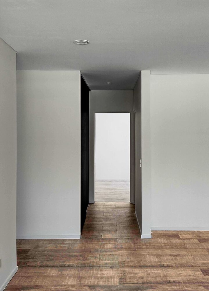 El bloque privado (módulo 4) queda conformado por dos habitaciones en suite. Una hacia el frente y otra hacia el contrafrente, separadas entre sí por un pequeño patio que permite añadir un encuadre desde el interior a la vez que favorece la ventilación cruzada.