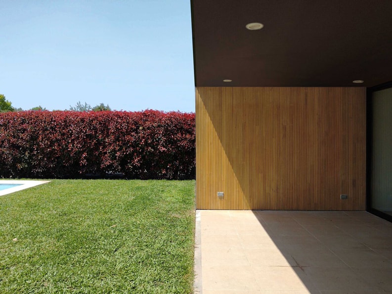 La cubierta de Casa en Campana toma toda la superficie construible y genera un espacio interior en sombra que reconoce el entorno expuesto en el que se encuentra. La luz resultante es diáfana y el interior se sumerge en una claridad introspectiva que dialoga tangencialmente con su entorno inmediato.