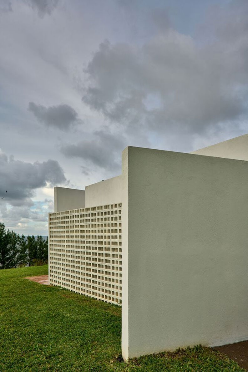 El esquema arquitectónico surge de crear un patio protegido por tres frentes, debido a las condiciones climáticas cambiantes de la zona, a pesar de ser un clima tropical.