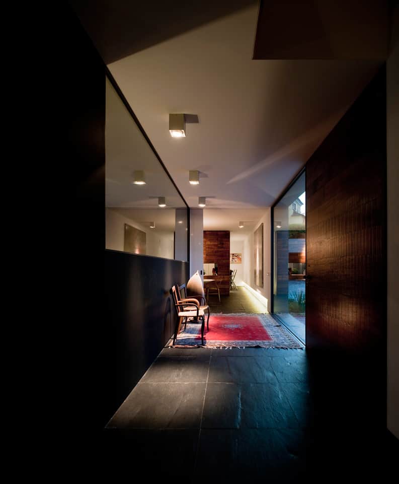 La entrada principal se encuentra en el Norte, una continuidad del jardín se abre sobre otro jardín inmediato hacia el sur. Entre los dos jardines ocurre una secuencia de espacios interconectados entre sí, cuya armonía es revelada interior y exteriormente por la inexistencia de barreras visuales.