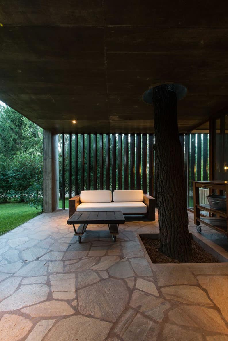 Haciendo especial hincapié en la flexibilidad de uso de los espacios públicos cubiertos (estar comedor – cocina) y descubiertos (patio central y galería) y su relación con los espacios exteriores. Un pino añoso muy importante a mantener, y que la misma tenga el mínimo de mantenimiento.