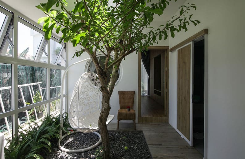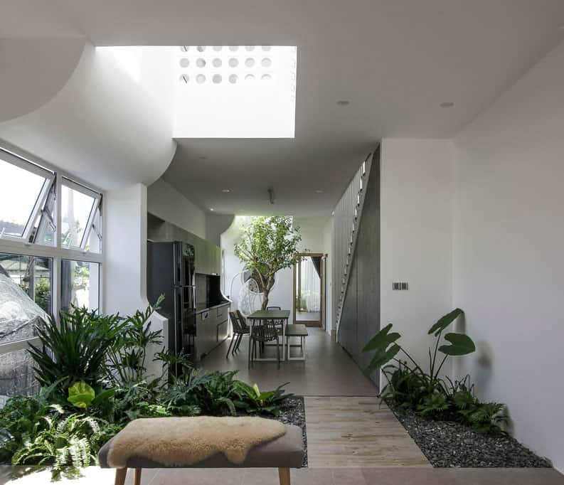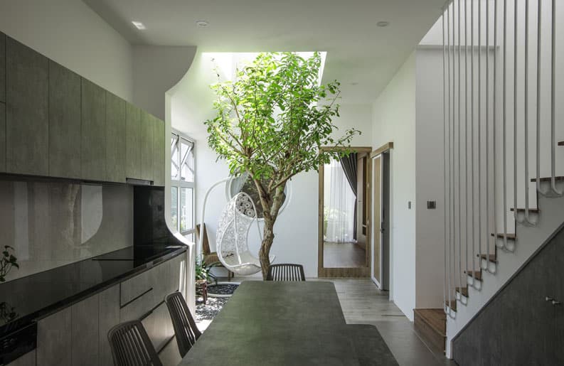 La vivienda tiene una superficie de 4,5 m por 25 m, con la fachada orientada directamente al oeste de la ciudad de Da Nang, una de las que soportan las temperaturas más altas de la región central.