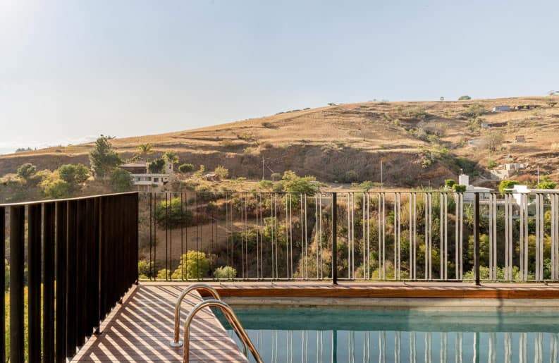 También, se aprovecha la excelente vista de la ciudad desde el sitio, teniendo la oportunidad de apreciar el atardecer desde un canal de nado que se diseñó en volado. Logrando esto mediante armaduras metálicas y una serie de elementos estructurales híbridos, dando como resultado un espacio mágico y el primer canal de nado en volado construido en México.