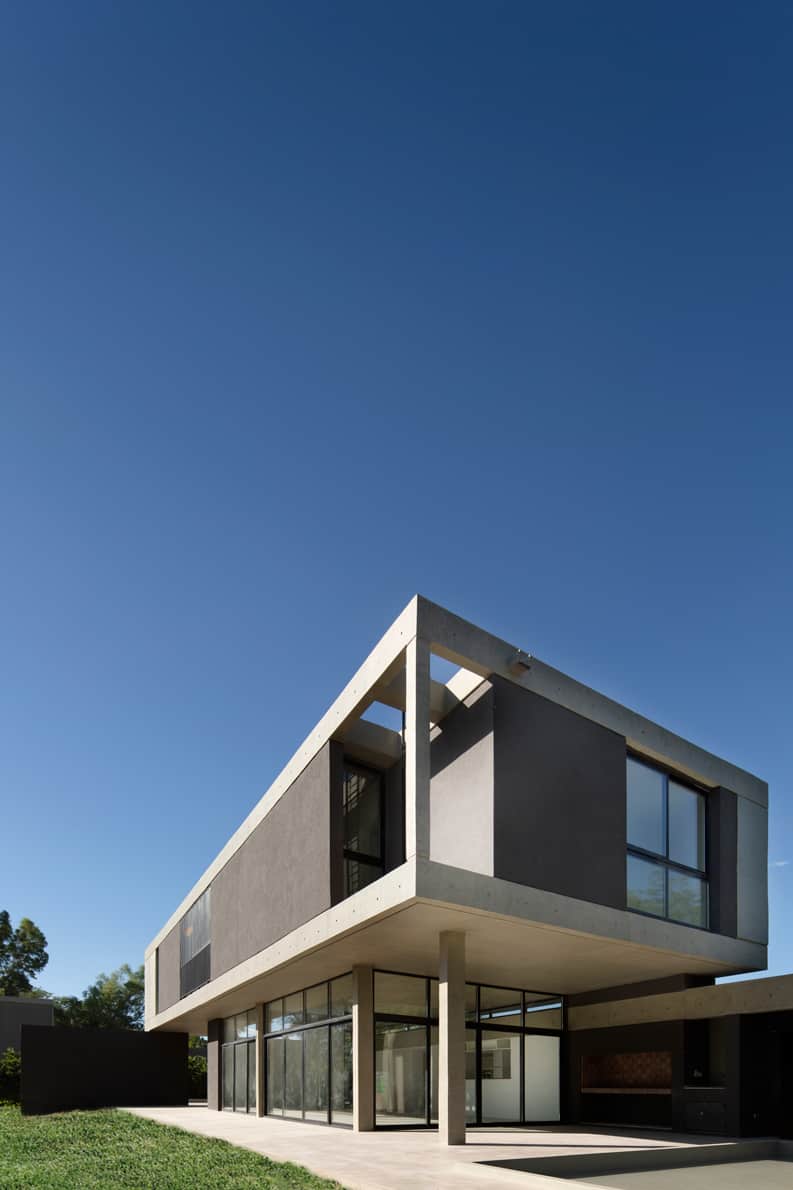 La imagen de la vivienda está caracterizada por el uso de hormigón el cual fue pensado no solo como elemento de sustento estructural, sino también como material principal encargado de generar sensaciones y expresar el carácter sintético y austero de la vivienda. De esta manera, el resto de los materiales quedan supeditados a acompañar el mismo sin sobresalir por sobre este.