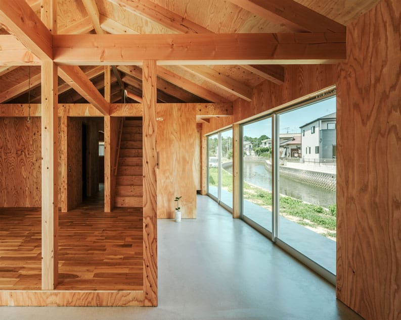 Casa Riverside es una vivienda para una familia de cuatro miembros. Después de que los hijos dejaran el hogar en el futuro, se quería una propiedad para que la pareja tuviera una vida cómoda. Esta vez, que es la segunda vez que se construye, se decidió planificar con un presupuesto y una escala mínimos.