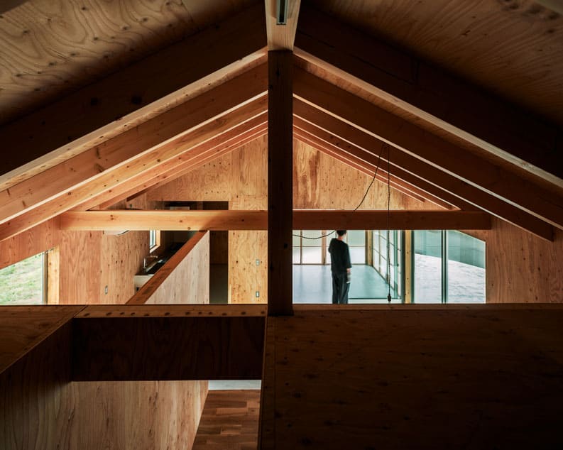 Se consiguió un gran altillo para cubrir la limitada superficie del suelo y se convirtió en un espacio para nuestros hijos. La terraza del lado norte, que está conectada con el espacio de las tareas domésticas, es un lugar privado y estático donde se puede tender la ropa y contemplar tranquilamente el río.