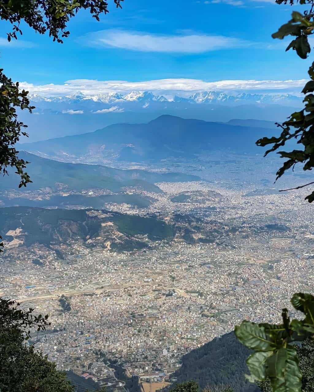 Aunque el Everest no parece claro y distinto (solo se ve una pequeña parte del Everest), puede disfrutar de la vista panorámica de otros muchos Himalayas desde la colina Chandragiri.