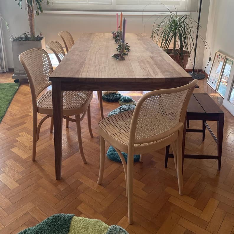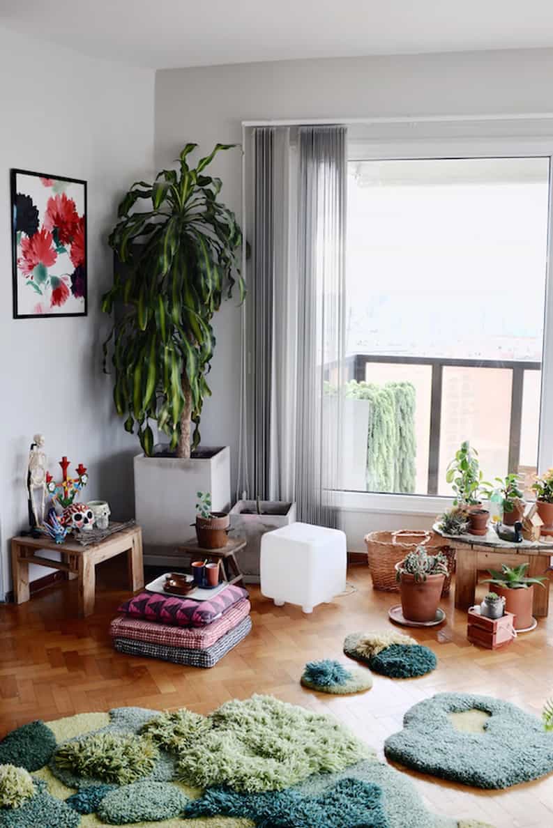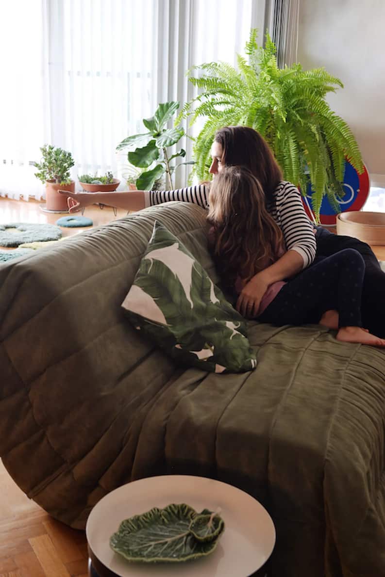 En otro rincón de la casa, un sillón más pequeño y una alfombra dan vida a un espacio dedicado al juego y la diversión de Leia, la hija de Narda.