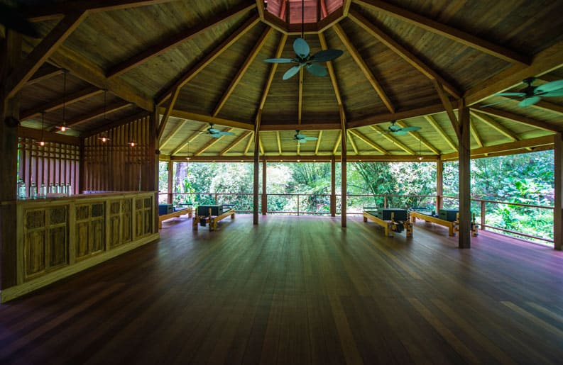 Todos los días ofrece a los huéspedes clases de yoga en un pabellón inmerso en la selva tropical. Seguidas de momentos de meditación con un instructor invitado.