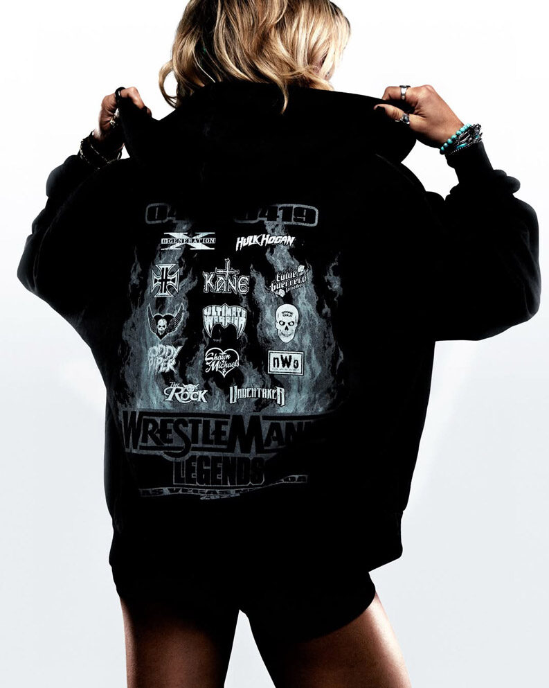 Parte del poder visual de la colección está en quiénes aparecen estampados en las prendas. La cápsula XO x WWE WrestleMania 42 rinde homenaje a una constelación de figuras legendarias y actuales de la lucha libre: Hulk Hogan, Dwayne «The Rock» Johnson, «Stone Cold» Steve Austin, John Cena y Rey Mysterio, entre otros. Son las caras que construyeron la WWE a lo largo de décadas — y verlas en prendas de moda tiene un peso que va mucho más allá del fanatismo habitual.